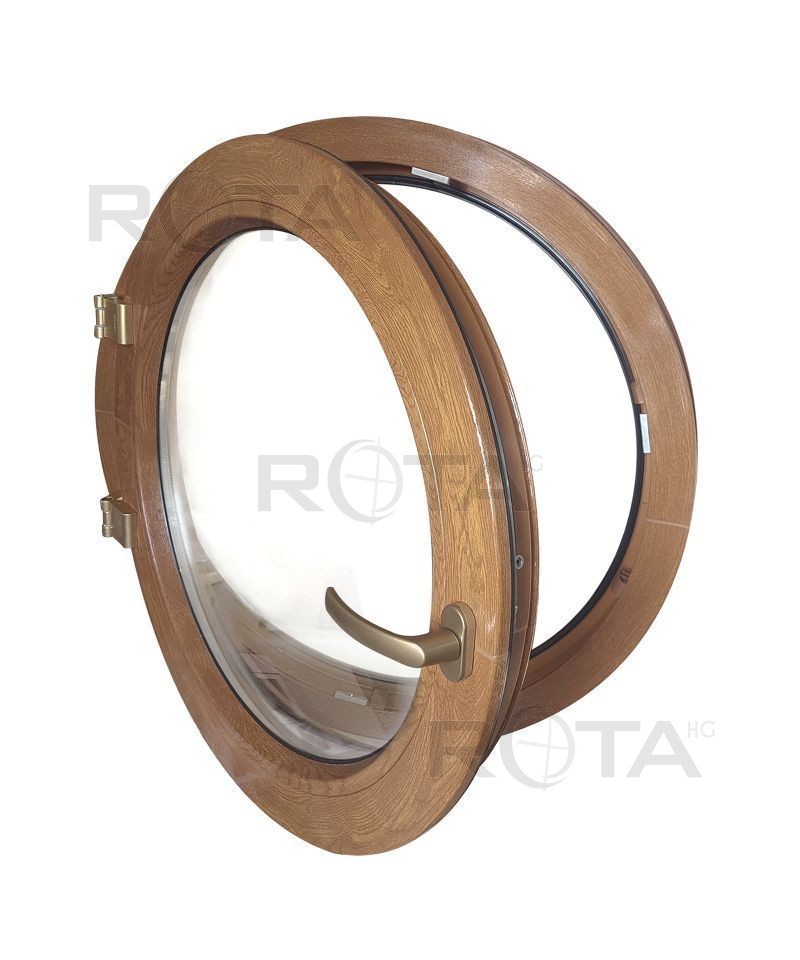 Finestra rotonda oblò a battente in PVC Quercia Dorata - spedizione urgente